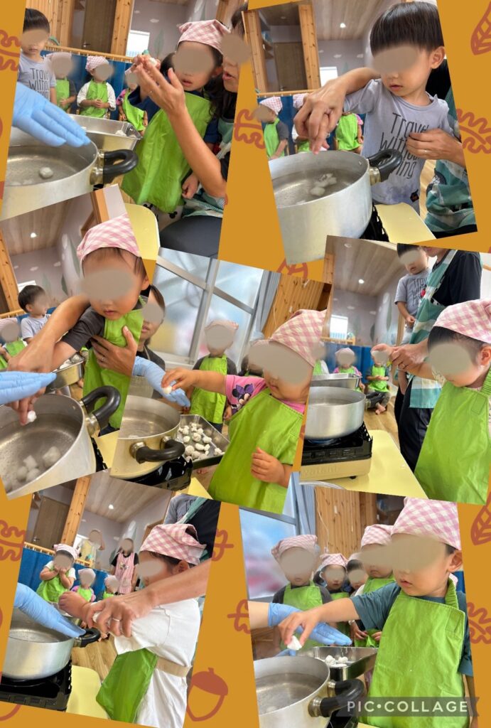 次は沸騰したお湯に作ったお団子を入れていきます。