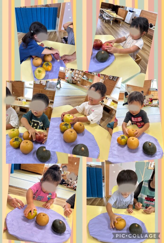 「どれが柿だと思う?」「これは何かな?」そんな保育者からの質問に元気よく「これだよ!」と指をさす子ども達☺️