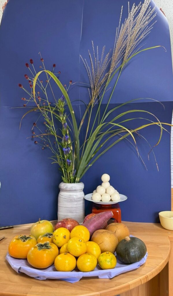 お月見の意味やお供え物の意味を聞きながら、丁寧に買ったものたちを置いていましたよ〜🥰