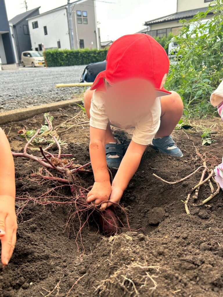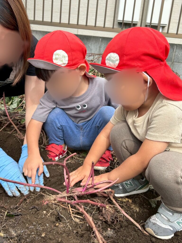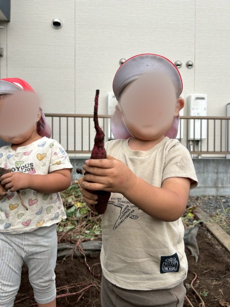 土を掘ってさつまいもが出てきた時は、それぞれが「あったよー」と嬉しそうでした!