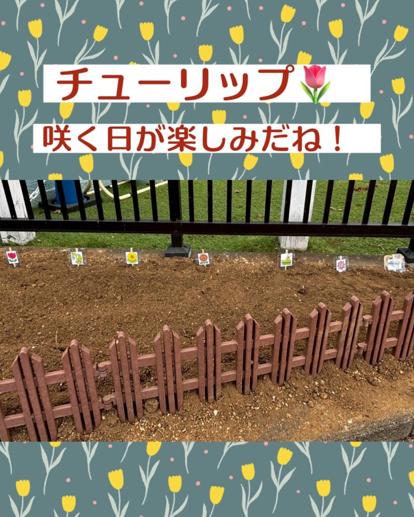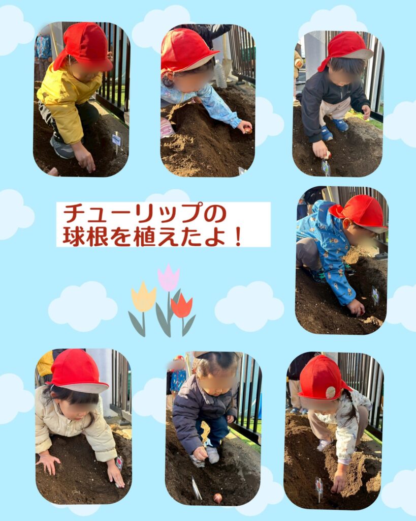 うさぎ組さん、卒園後の春に咲くようにチューリップの球根を植えました。
