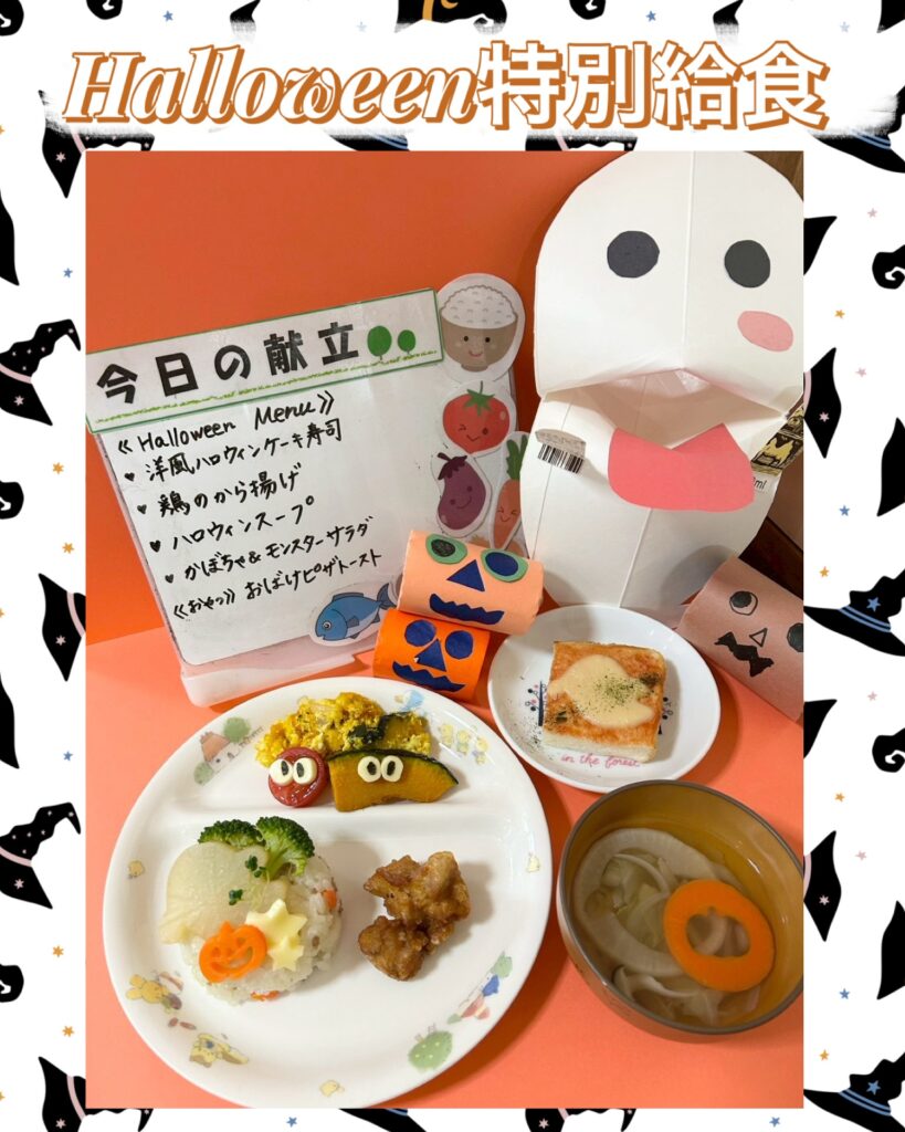 給食の先生たちが一生懸命作ってくれた、ハロウィン特別給食も大喜びな子どもたちでした!