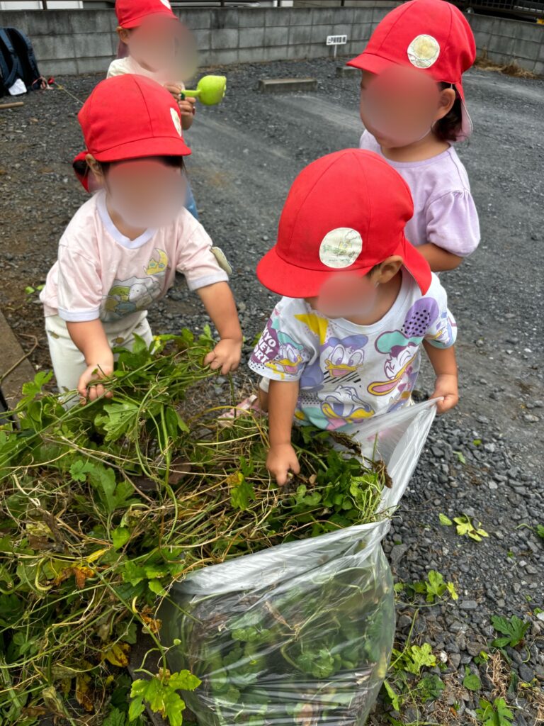 「ありがとう!」「おいしかったよー」と感謝をしながら引っ張りました。