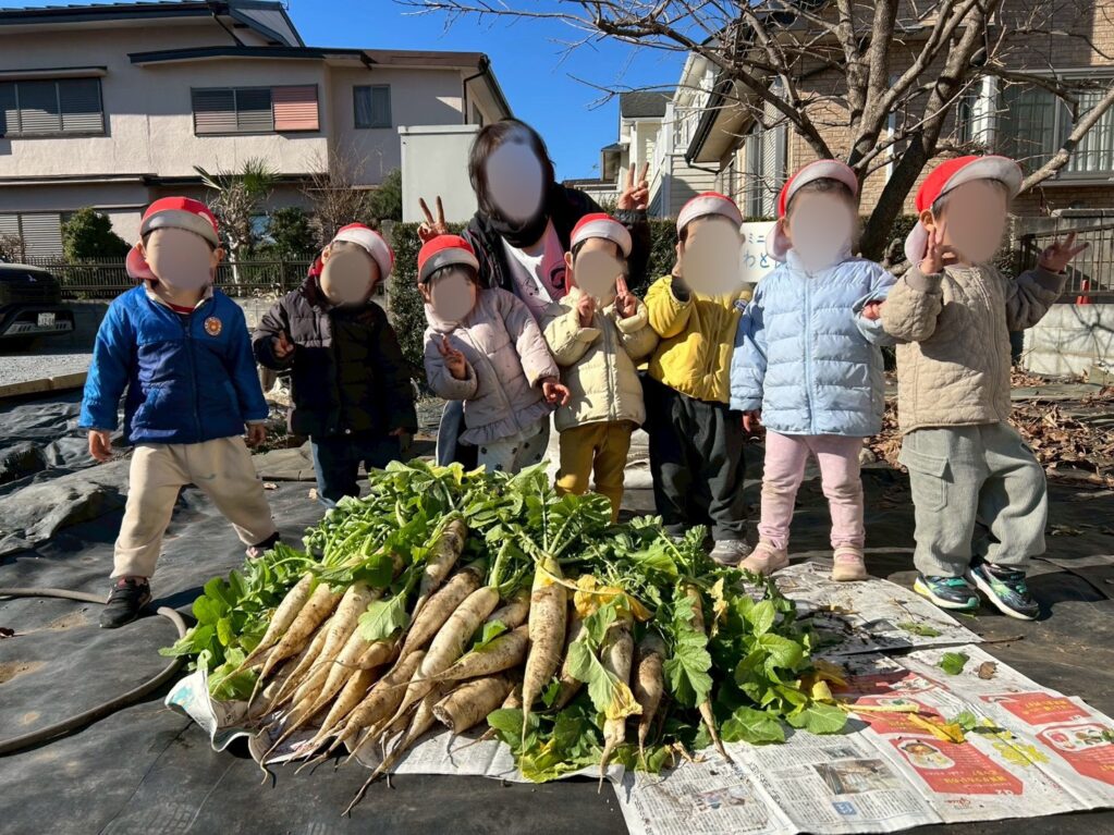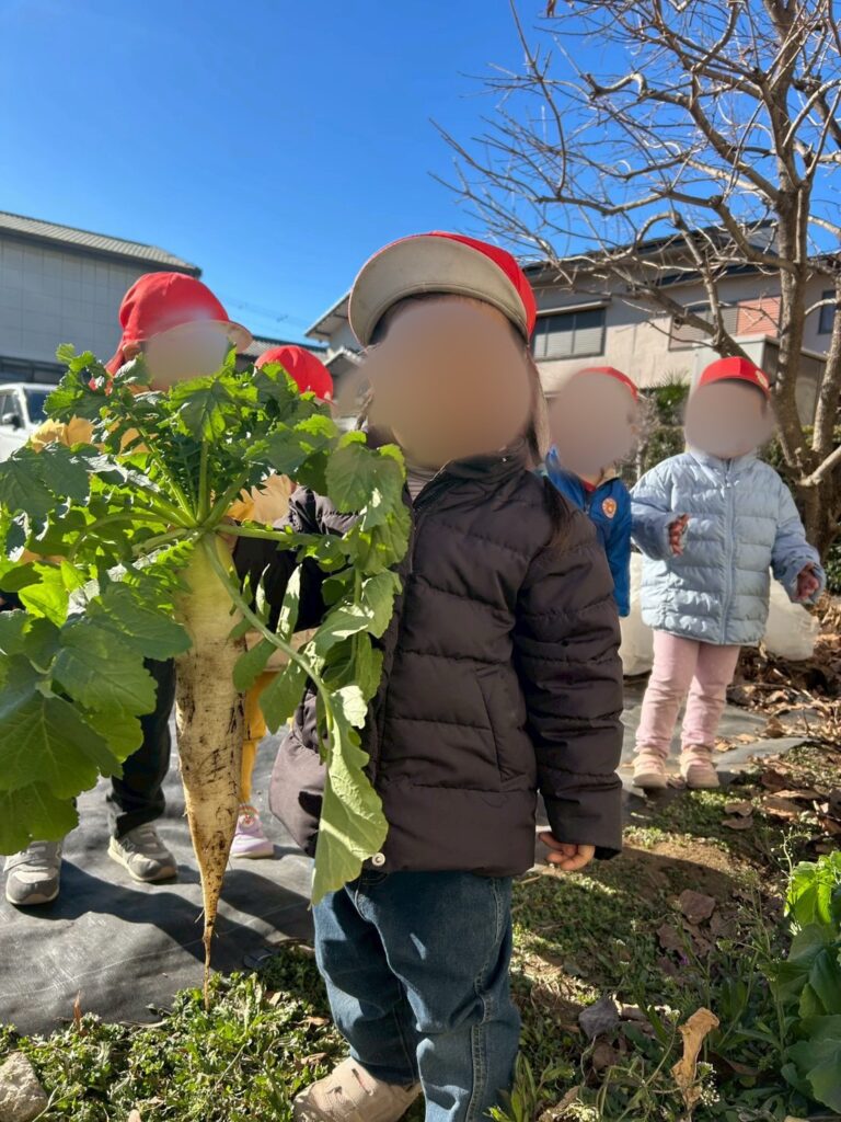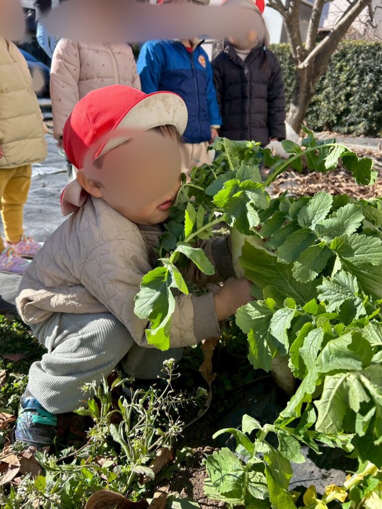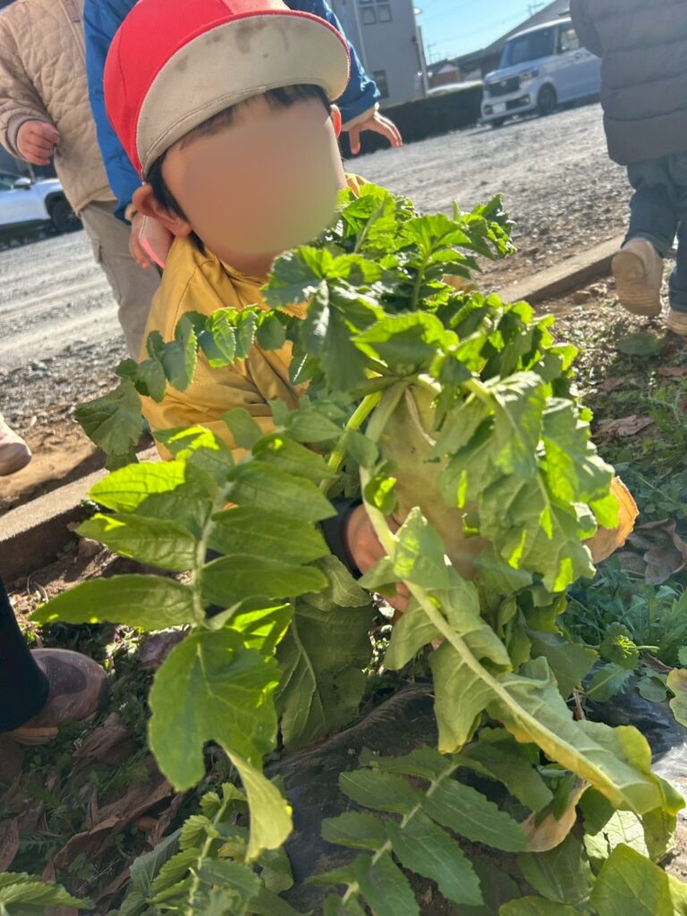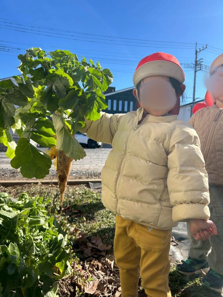 今日は2歳児うさぎ組さんは、大根掘りをしました。